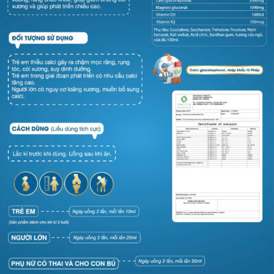 Trẻ em: Hỗ trợ phát triển xương, tăng trưởng chiều cao, đặc biệt hiệu quả cho trẻ kém hấp thu hoặc suy dinh dưỡng.