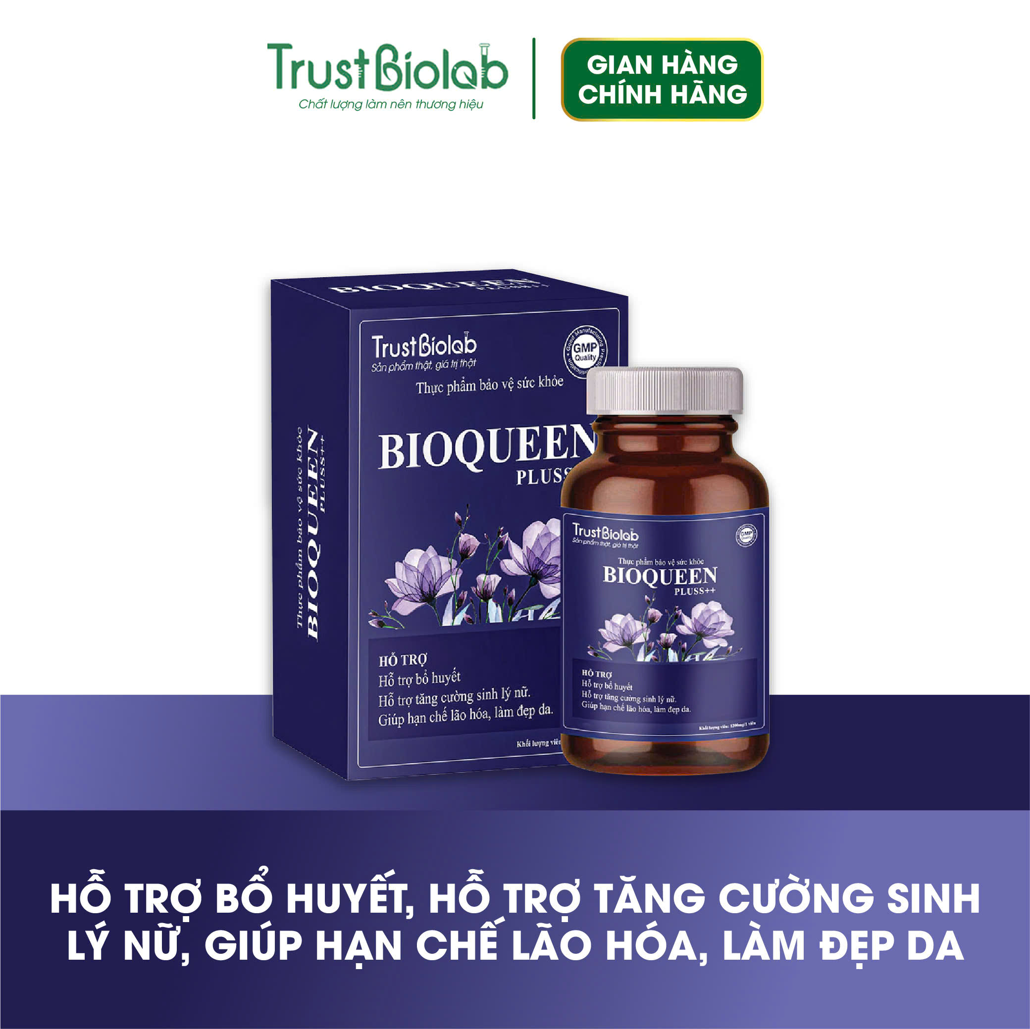 TPBVSK viên uống Bioqueen pluss++ tiên phong kết hợp bài cao dược liệu (Cao Ích mẫu, Cao Bạch truật, Cao Sinh địa, Cao Hà thủ ô đỏ, Cao Đương quy, Cao Hương phụ…) hỗ trợ bổ máu huyết cùng bộ 3 nguồn nội tiết tố thảo dược phytoestrogen từ Cao Sâm tố nữ, Isoflavone 80%, Chiết xuất Củ mài đắng (Pregnenolone acetate) hỗ trợ cân bằng nội tiết nội sinh cùng với và Nanocurcumin, L-cystine, collagen peptide, Cholin, Vitamin E mang đến một giải pháp cho phụ nữ gặp tình trạng rối loạn và suy giảm nội tiết tố nữ, suy giảm chức năng sinh lý, gặp các vấn đề về máu huyết nội tiết kinh nguyệt sau sinh, tiền mãn kinh, mãn kinh, tuổi trung niên, lão suy theo thời gian.